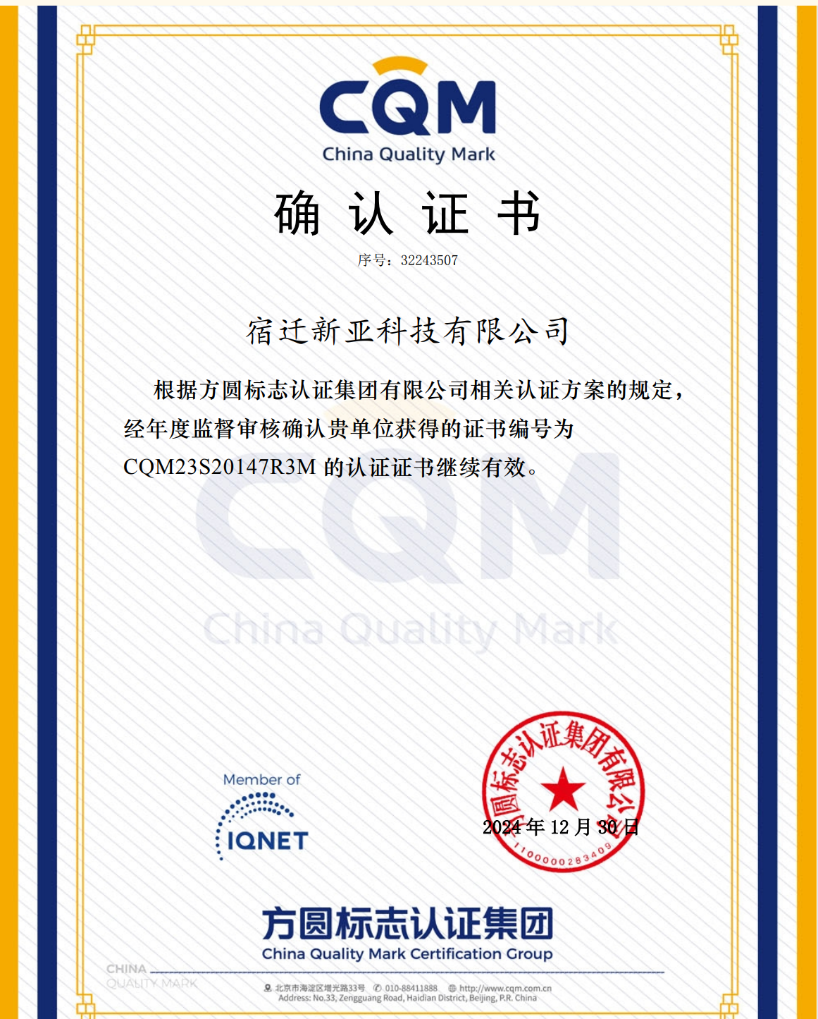選擇新亞--品質(zhì)保證